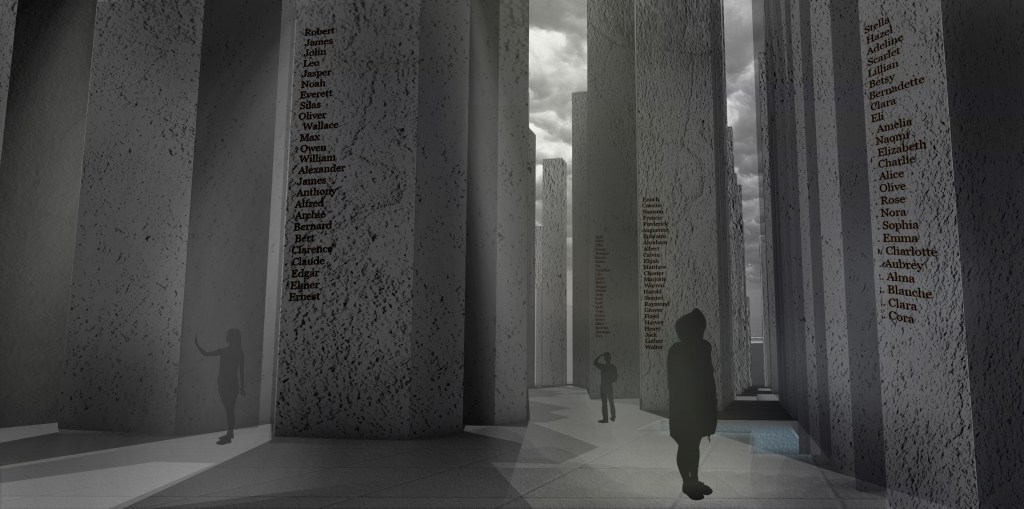 understand how terrible the experience is. The visiting stream is not only horizontal, but also vertical. The elevator in the larger glass columns make it possible for people to see the exhibit in the bottom of the sea, the intercessor’s exhibit, as well as the overlook view on the top of the column. People’s feeling can be different based on the different level of the memorial.