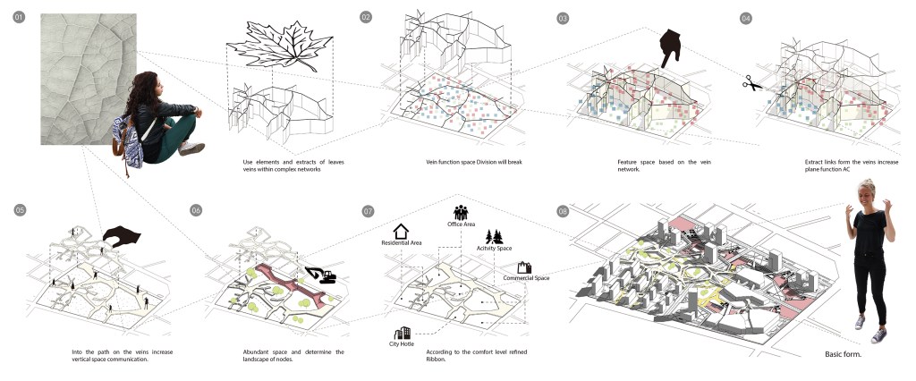monotonous and arbitrary design and interrelated interference streamline, it is difficult to form a stable business radiation system. The purpose of this design is to change the current status and forged a new spatial experience of CBD. The inspiration of The VEINS CITY derives from the basic form of the vein. The leaf looks simple, but the structure is intricate. The vein connected the all parts, and sustains fundamental living demands of organism. To apply the vein into the design concept of the city, concatenated all the corners of the sophisticated blocks by using the most flexible design techniques, and worked out a reasonable and functional network disposal and communication streamline, forged a multi-layered, multidimensional spatial experience.